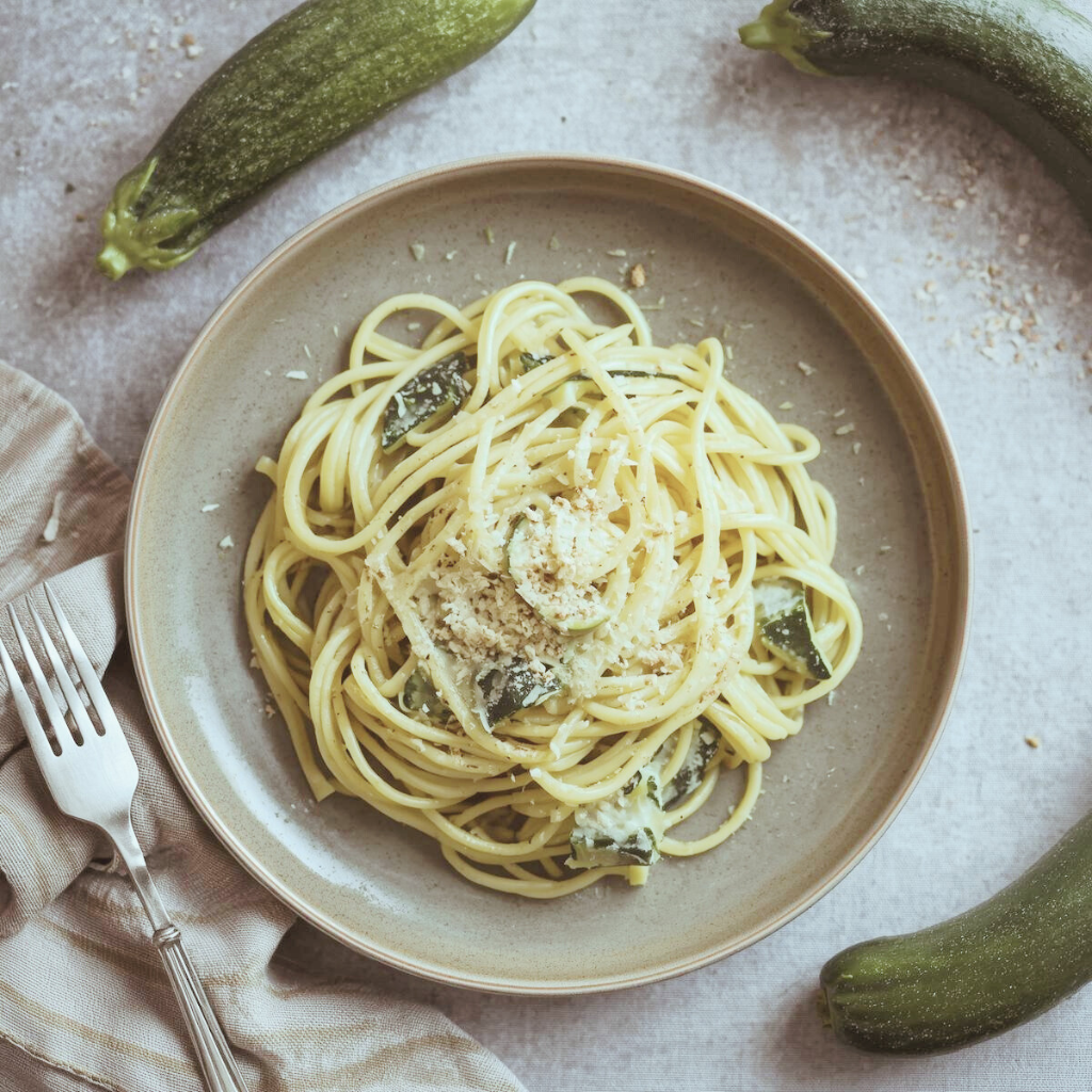 1. Makaron z sosem cukiniowo-serowym